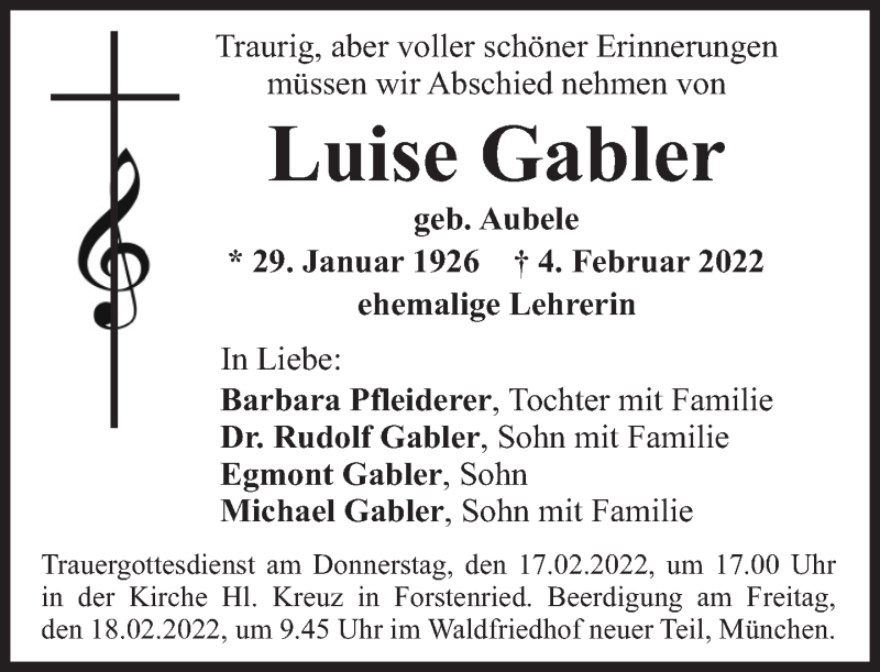 Hier finden Sie alle Traueranzeigen aus der Zeitung, die bisher für Luise Gabler erschienen sind. Weitere Traueranzeigen, die in der Zeitung erscheinen, werden hier ebenfalls aufgelistet