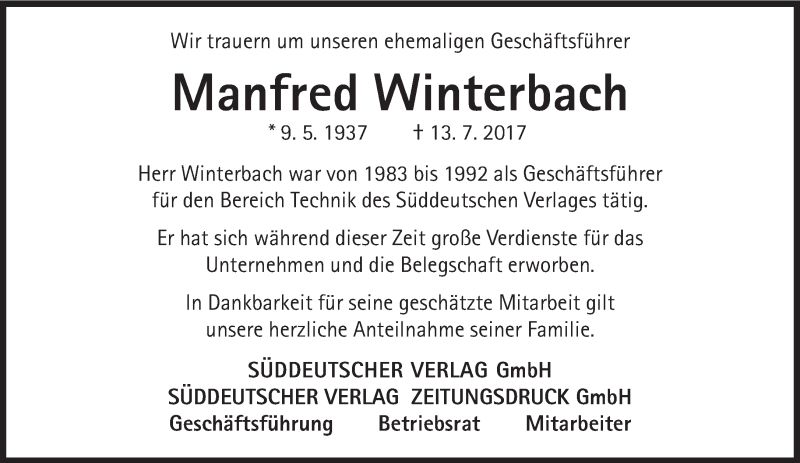 Hier finden Sie alle Traueranzeigen aus der Zeitung, die bisher für Manfred Winterbach erschienen sind. Weitere Traueranzeigen, die in der Zeitung erscheinen, werden hier ebenfalls aufgelistet
