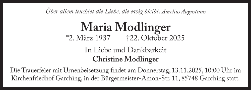 Hier finden Sie alle Traueranzeigen aus der Zeitung, die bisher für Maria Modlinger erschienen sind. Weitere Traueranzeigen, die in der Zeitung erscheinen, werden hier ebenfalls aufgelistet