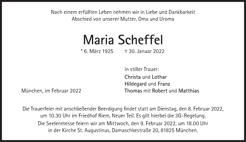 Hier finden Sie alle Traueranzeigen aus der Zeitung, die bisher für Maria Scheffel erschienen sind. Weitere Traueranzeigen, die in der Zeitung erscheinen, werden hier ebenfalls aufgelistet