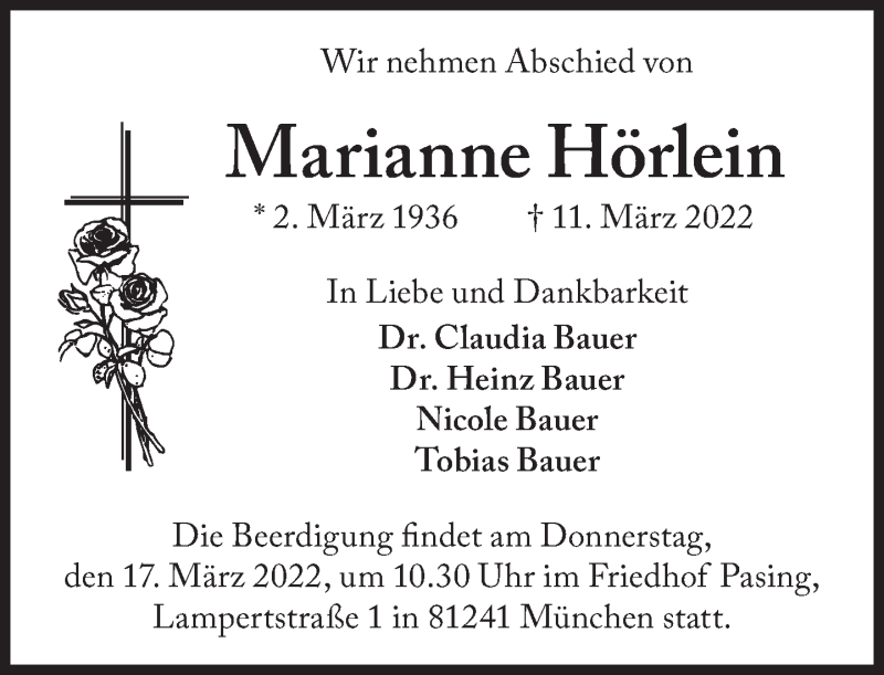 Hier finden Sie alle Traueranzeigen aus der Zeitung, die bisher für Marianne Hörlein erschienen sind. Weitere Traueranzeigen, die in der Zeitung erscheinen, werden hier ebenfalls aufgelistet