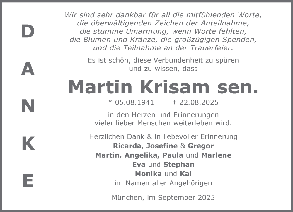 Hier finden Sie alle Traueranzeigen aus der Zeitung, die bisher für Martin Krisam erschienen sind. Weitere Traueranzeigen, die in der Zeitung erscheinen, werden hier ebenfalls aufgelistet