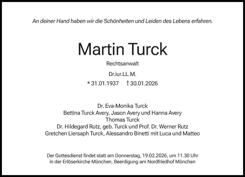 Hier finden Sie alle Traueranzeigen aus der Zeitung, die bisher für Martin Turck erschienen sind. Weitere Traueranzeigen, die in der Zeitung erscheinen, werden hier ebenfalls aufgelistet