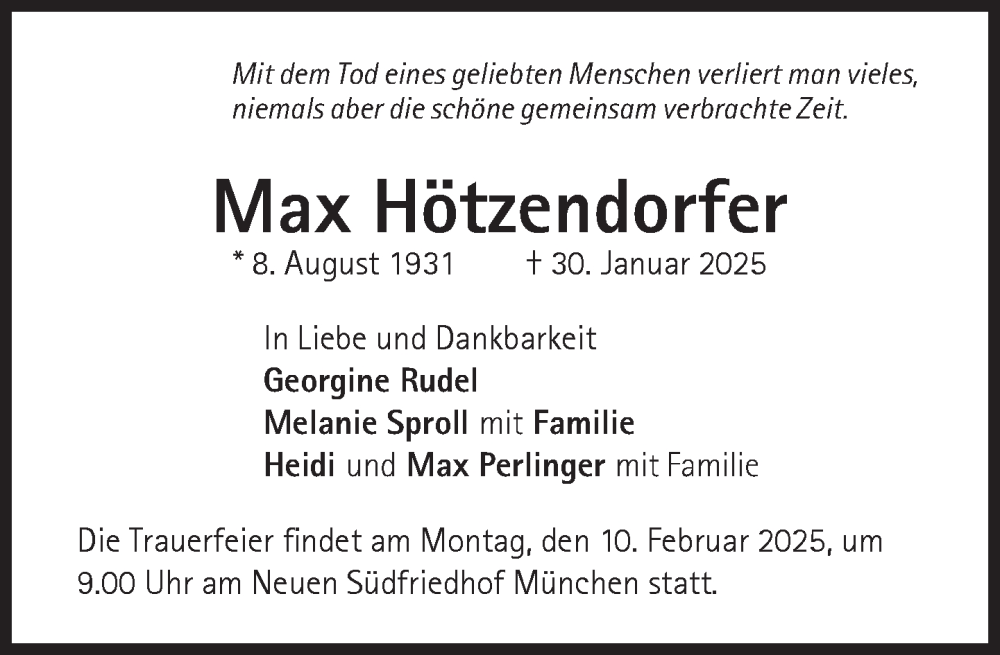 Hier finden Sie alle Traueranzeigen aus der Zeitung, die bisher für Max Hötzendorfer erschienen sind. Weitere Traueranzeigen, die in der Zeitung erscheinen, werden hier ebenfalls aufgelistet