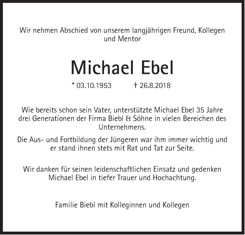 Hier finden Sie alle Traueranzeigen aus der Zeitung, die bisher für Michael Ebel erschienen sind. Weitere Traueranzeigen, die in der Zeitung erscheinen, werden hier ebenfalls aufgelistet