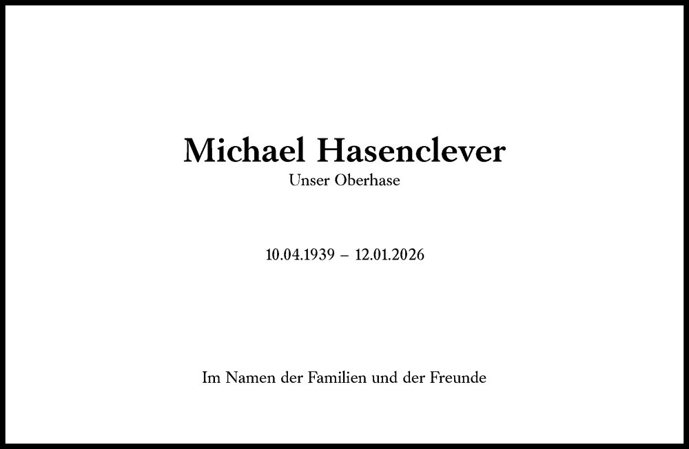Hier finden Sie alle Traueranzeigen aus der Zeitung, die bisher für Michael Hasenclever erschienen sind. Weitere Traueranzeigen, die in der Zeitung erscheinen, werden hier ebenfalls aufgelistet