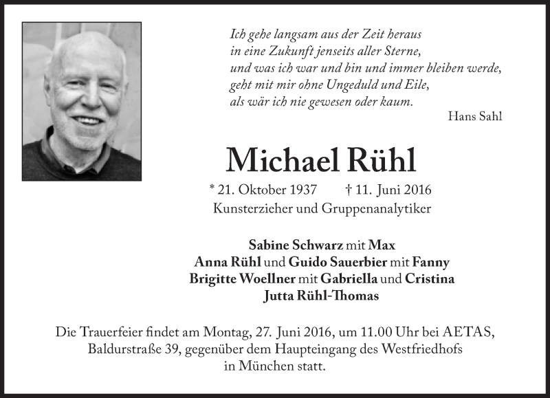 Hier finden Sie alle Traueranzeigen aus der Zeitung, die bisher für Michael Rühl erschienen sind. Weitere Traueranzeigen, die in der Zeitung erscheinen, werden hier ebenfalls aufgelistet