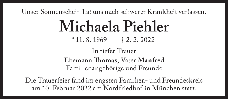 Hier finden Sie alle Traueranzeigen aus der Zeitung, die bisher für Michaela Piehler erschienen sind. Weitere Traueranzeigen, die in der Zeitung erscheinen, werden hier ebenfalls aufgelistet