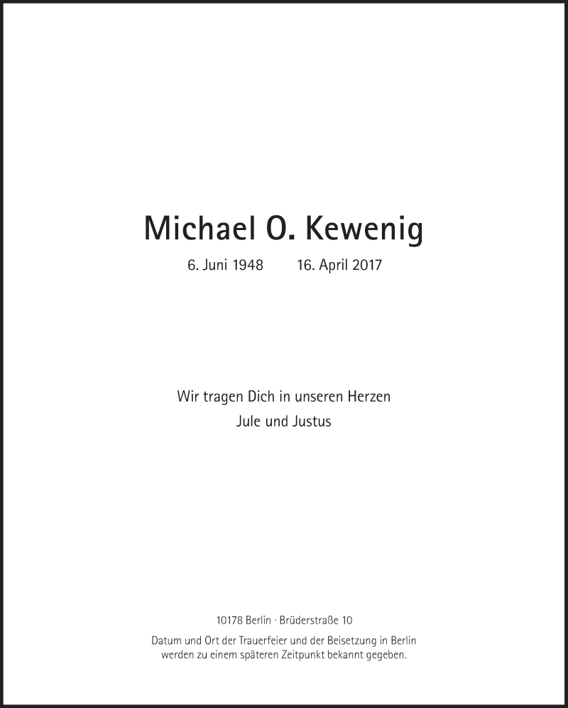 Hier finden Sie alle Traueranzeigen aus der Zeitung, die bisher für Michael O. Kewenig erschienen sind. Weitere Traueranzeigen, die in der Zeitung erscheinen, werden hier ebenfalls aufgelistet