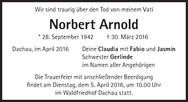 Hier finden Sie alle Traueranzeigen aus der Zeitung, die bisher für Norbert Arnold erschienen sind. Weitere Traueranzeigen, die in der Zeitung erscheinen, werden hier ebenfalls aufgelistet