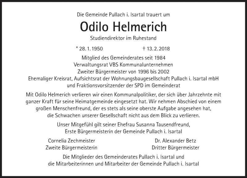 Hier finden Sie alle Traueranzeigen aus der Zeitung, die bisher für Odilo Helmerich erschienen sind. Weitere Traueranzeigen, die in der Zeitung erscheinen, werden hier ebenfalls aufgelistet