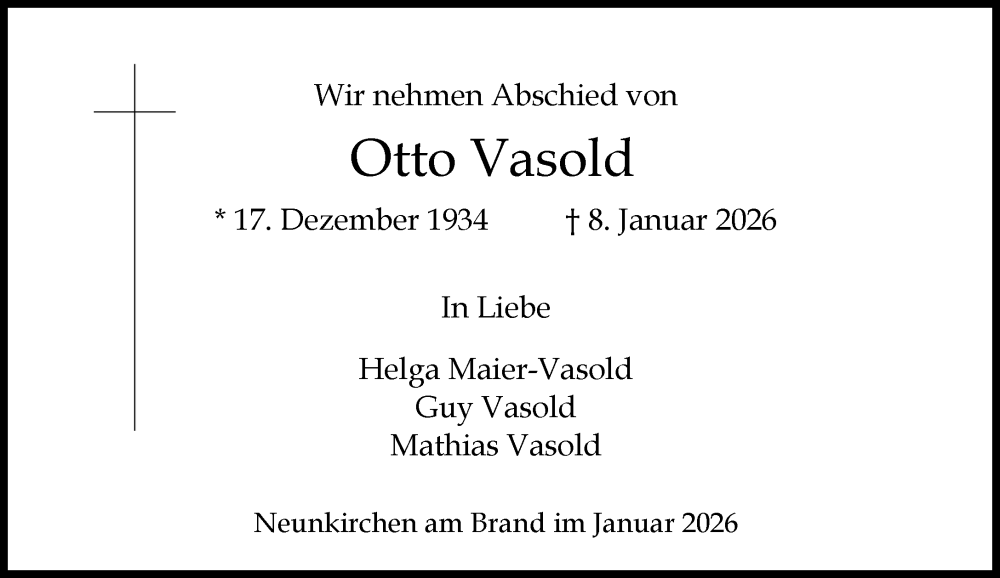 Hier finden Sie alle Traueranzeigen aus der Zeitung, die bisher für Otto Vasold erschienen sind. Weitere Traueranzeigen, die in der Zeitung erscheinen, werden hier ebenfalls aufgelistet