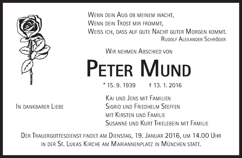 Hier finden Sie alle Traueranzeigen aus der Zeitung, die bisher für Peter Mund erschienen sind. Weitere Traueranzeigen, die in der Zeitung erscheinen, werden hier ebenfalls aufgelistet