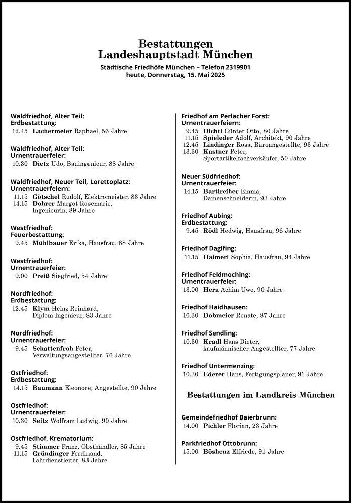 Hier finden Sie alle Traueranzeigen aus der Zeitung, die bisher für Raphael Lachermeier erschienen sind. Weitere Traueranzeigen, die in der Zeitung erscheinen, werden hier ebenfalls aufgelistet