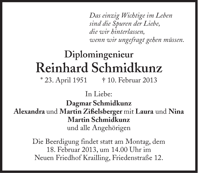 Hier finden Sie alle Traueranzeigen aus der Zeitung, die bisher für Reinhard Schmidkunz erschienen sind. Weitere Traueranzeigen, die in der Zeitung erscheinen, werden hier ebenfalls aufgelistet