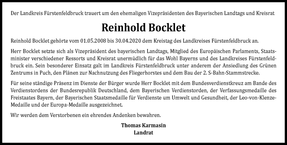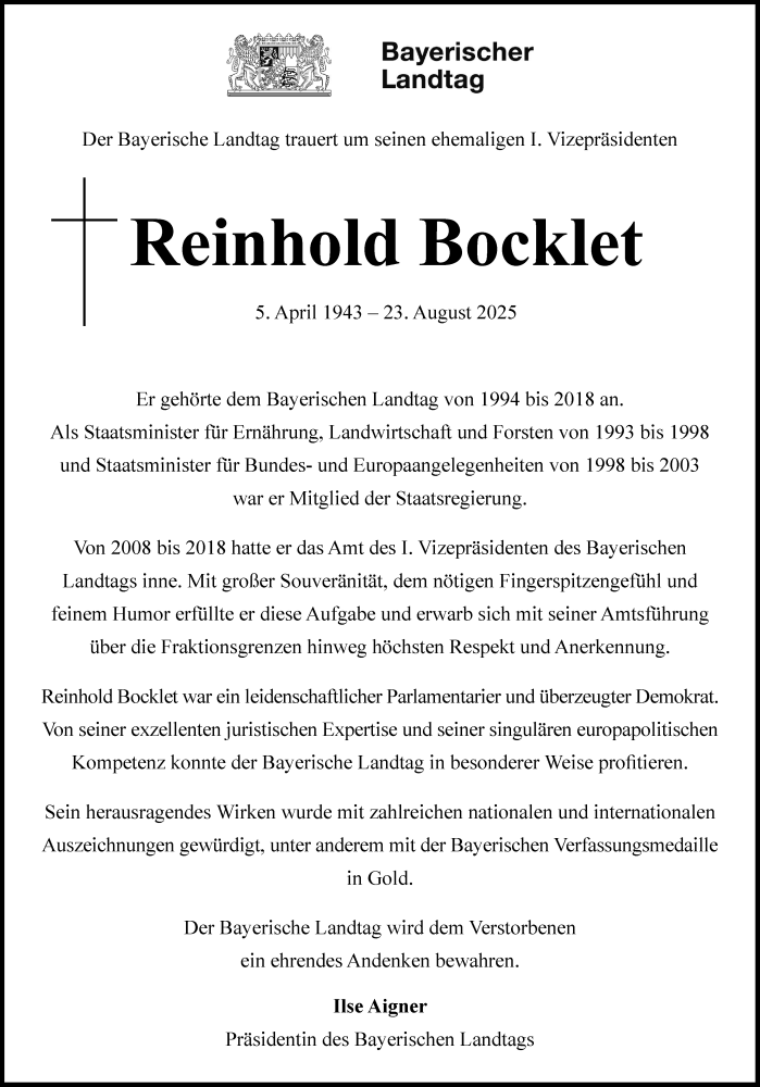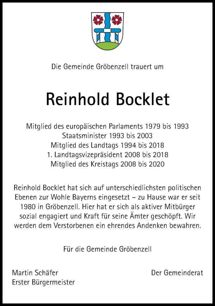 Hier finden Sie alle Traueranzeigen aus der Zeitung, die bisher für Reinhold Bocklet erschienen sind. Weitere Traueranzeigen, die in der Zeitung erscheinen, werden hier ebenfalls aufgelistet