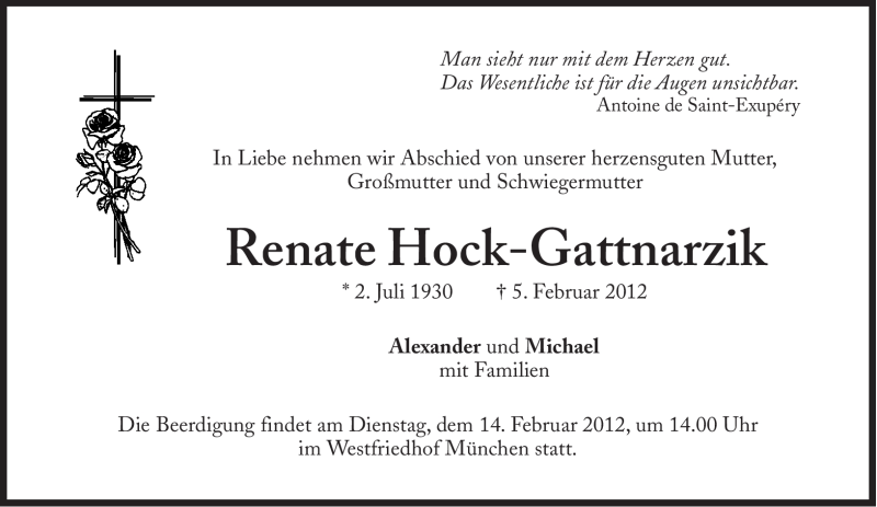 Hier finden Sie alle Traueranzeigen aus der Zeitung, die bisher für Renate Hock-Gattnarzik erschienen sind. Weitere Traueranzeigen, die in der Zeitung erscheinen, werden hier ebenfalls aufgelistet