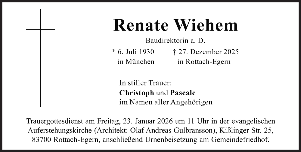 Hier finden Sie alle Traueranzeigen aus der Zeitung, die bisher für Renate Wiehem erschienen sind. Weitere Traueranzeigen, die in der Zeitung erscheinen, werden hier ebenfalls aufgelistet