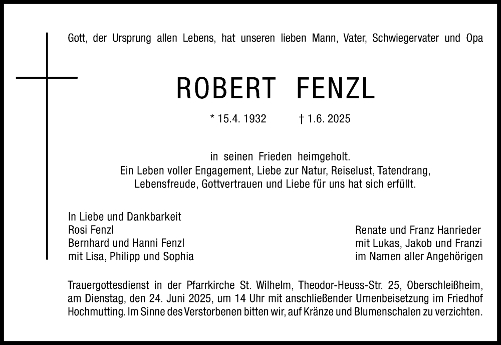 Hier finden Sie alle Traueranzeigen aus der Zeitung, die bisher für Robert Fenzl erschienen sind. Weitere Traueranzeigen, die in der Zeitung erscheinen, werden hier ebenfalls aufgelistet