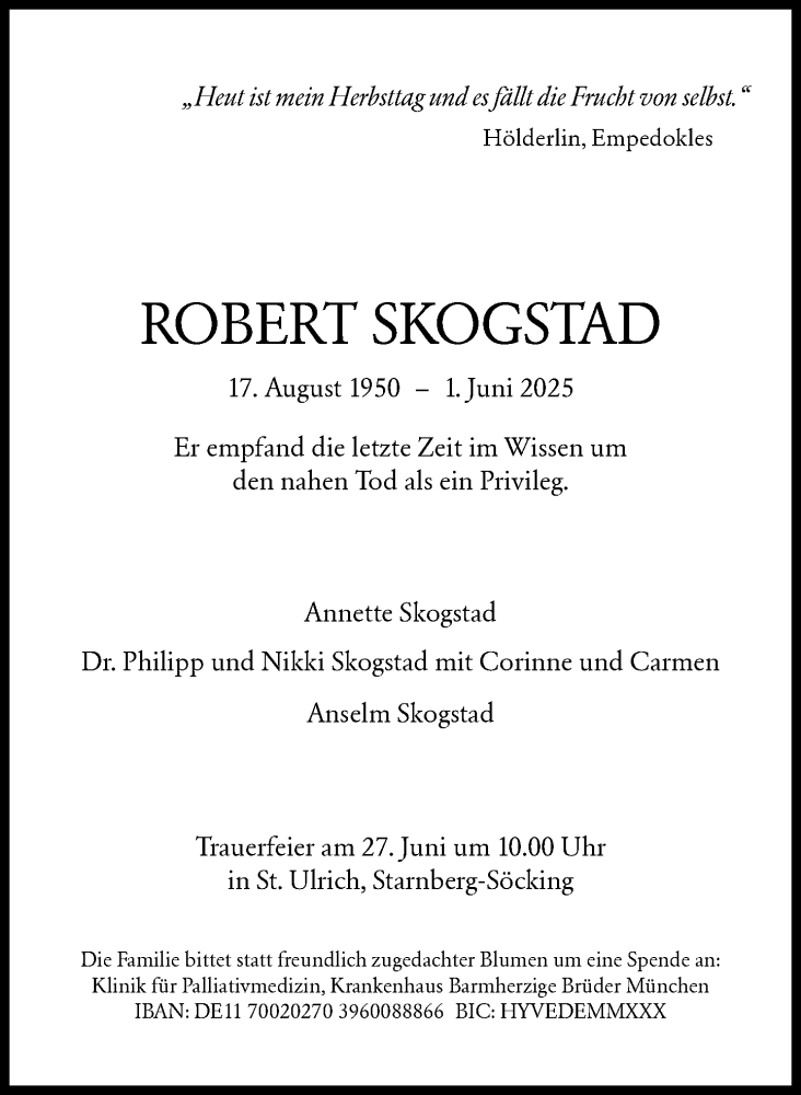 Hier finden Sie alle Traueranzeigen aus der Zeitung, die bisher für Robert Skogstad erschienen sind. Weitere Traueranzeigen, die in der Zeitung erscheinen, werden hier ebenfalls aufgelistet