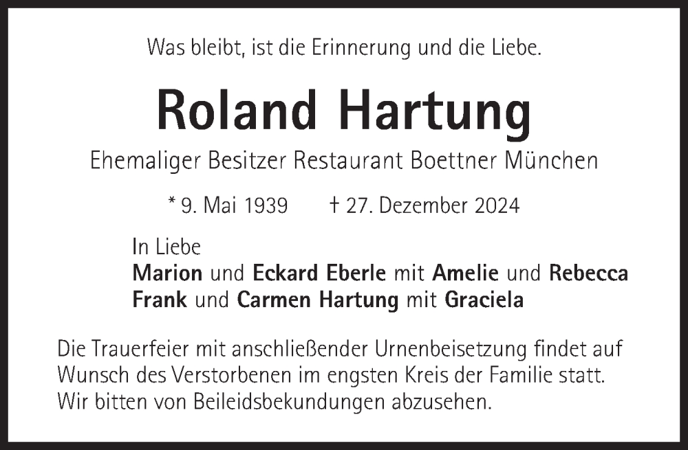 Hier finden Sie alle Traueranzeigen aus der Zeitung, die bisher für Roland Hartung erschienen sind. Weitere Traueranzeigen, die in der Zeitung erscheinen, werden hier ebenfalls aufgelistet