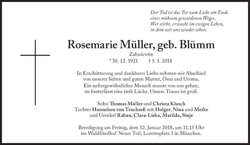 Hier finden Sie alle Traueranzeigen aus der Zeitung, die bisher für Rosemarie Müller erschienen sind. Weitere Traueranzeigen, die in der Zeitung erscheinen, werden hier ebenfalls aufgelistet