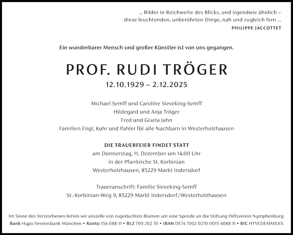 Hier finden Sie alle Traueranzeigen aus der Zeitung, die bisher für Rudi Tröger erschienen sind. Weitere Traueranzeigen, die in der Zeitung erscheinen, werden hier ebenfalls aufgelistet