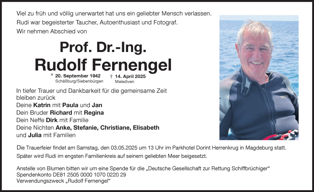 Hier finden Sie alle Traueranzeigen aus der Zeitung, die bisher für Rudolf Fernengel erschienen sind. Weitere Traueranzeigen, die in der Zeitung erscheinen, werden hier ebenfalls aufgelistet