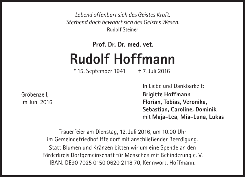 Hier finden Sie alle Traueranzeigen aus der Zeitung, die bisher für Rudolf Hoffmann erschienen sind. Weitere Traueranzeigen, die in der Zeitung erscheinen, werden hier ebenfalls aufgelistet