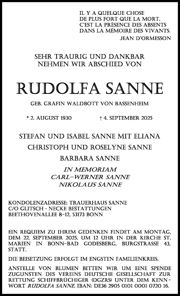 Hier finden Sie alle Traueranzeigen aus der Zeitung, die bisher für Rudolfa Sanne erschienen sind. Weitere Traueranzeigen, die in der Zeitung erscheinen, werden hier ebenfalls aufgelistet