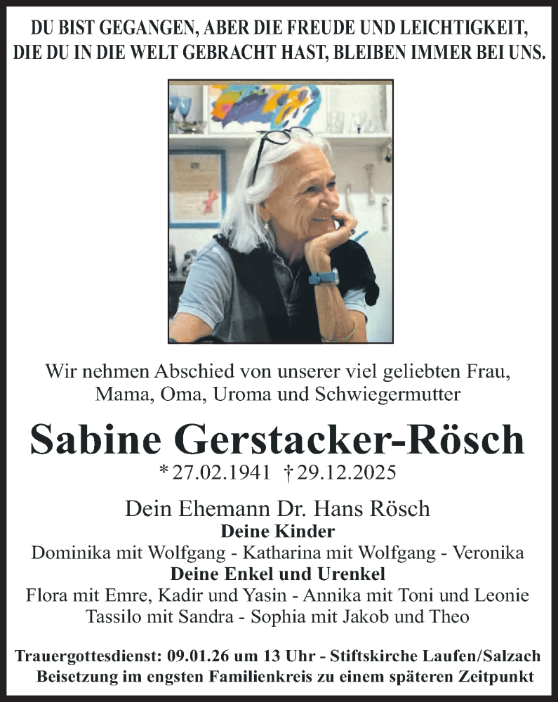 Hier finden Sie alle Traueranzeigen aus der Zeitung, die bisher für Sabine Gerstacker-Rösch erschienen sind. Weitere Traueranzeigen, die in der Zeitung erscheinen, werden hier ebenfalls aufgelistet