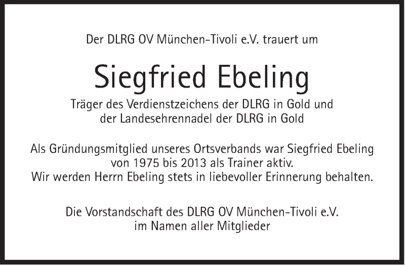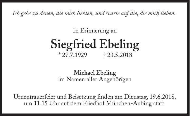 Hier finden Sie alle Traueranzeigen aus der Zeitung, die bisher für Siegfried Ebeling erschienen sind. Weitere Traueranzeigen, die in der Zeitung erscheinen, werden hier ebenfalls aufgelistet
