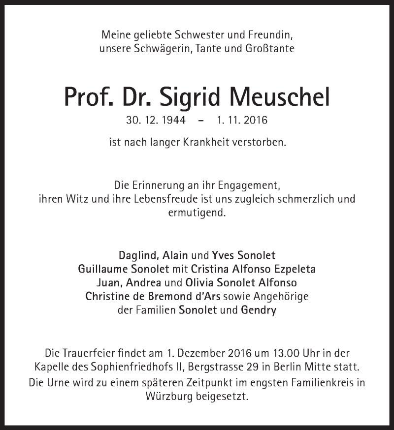 Hier finden Sie alle Traueranzeigen aus der Zeitung, die bisher für Sigrid Meuschel erschienen sind. Weitere Traueranzeigen, die in der Zeitung erscheinen, werden hier ebenfalls aufgelistet