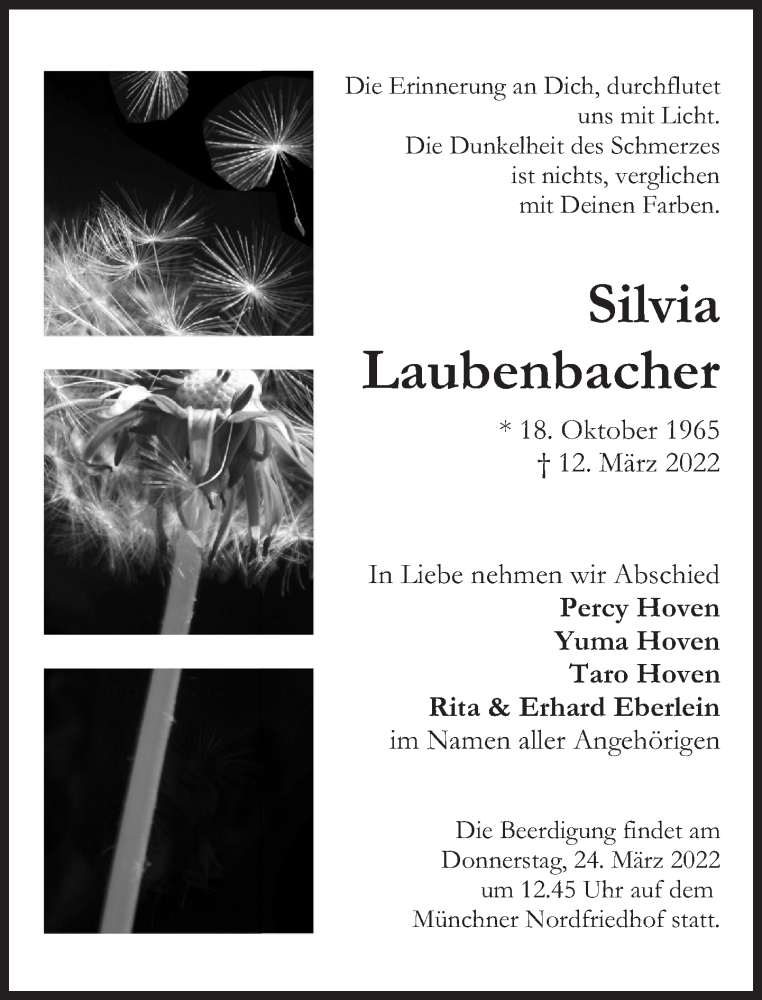 Hier finden Sie alle Traueranzeigen aus der Zeitung, die bisher für Silvia Laubenbacher erschienen sind. Weitere Traueranzeigen, die in der Zeitung erscheinen, werden hier ebenfalls aufgelistet