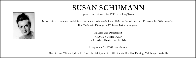 Hier finden Sie alle Traueranzeigen aus der Zeitung, die bisher für Susan Schumann erschienen sind. Weitere Traueranzeigen, die in der Zeitung erscheinen, werden hier ebenfalls aufgelistet