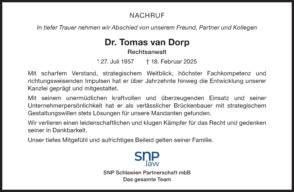Hier finden Sie alle Traueranzeigen aus der Zeitung, die bisher für Tomas van Dorp erschienen sind. Weitere Traueranzeigen, die in der Zeitung erscheinen, werden hier ebenfalls aufgelistet