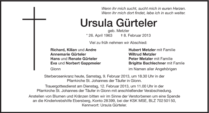 Hier finden Sie alle Traueranzeigen aus der Zeitung, die bisher für Ursula Gürteler erschienen sind. Weitere Traueranzeigen, die in der Zeitung erscheinen, werden hier ebenfalls aufgelistet