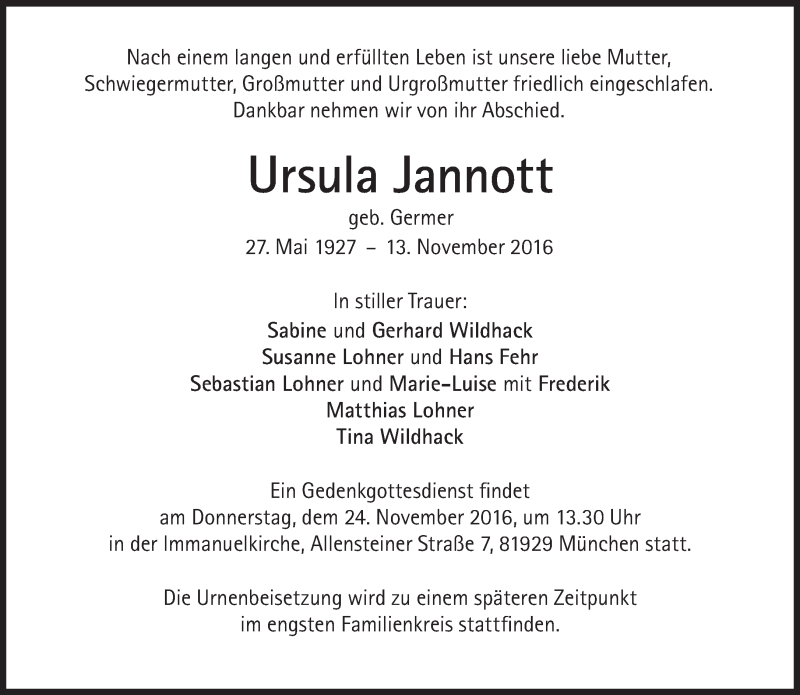 Hier finden Sie alle Traueranzeigen aus der Zeitung, die bisher für Ursula Jannott erschienen sind. Weitere Traueranzeigen, die in der Zeitung erscheinen, werden hier ebenfalls aufgelistet