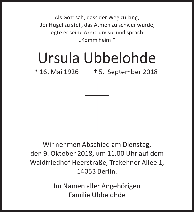Hier finden Sie alle Traueranzeigen aus der Zeitung, die bisher für Ursula Ubbelohde erschienen sind. Weitere Traueranzeigen, die in der Zeitung erscheinen, werden hier ebenfalls aufgelistet