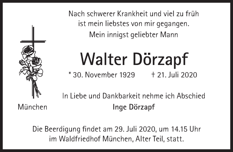 Hier finden Sie alle Traueranzeigen aus der Zeitung, die bisher für Walter Dörzapf erschienen sind. Weitere Traueranzeigen, die in der Zeitung erscheinen, werden hier ebenfalls aufgelistet