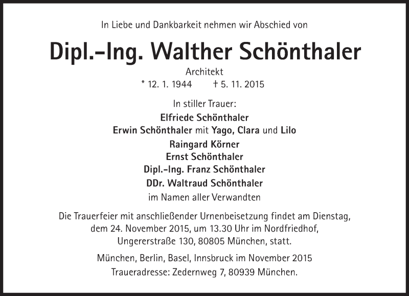 Hier finden Sie alle Traueranzeigen aus der Zeitung, die bisher für Walther Schönthaler erschienen sind. Weitere Traueranzeigen, die in der Zeitung erscheinen, werden hier ebenfalls aufgelistet