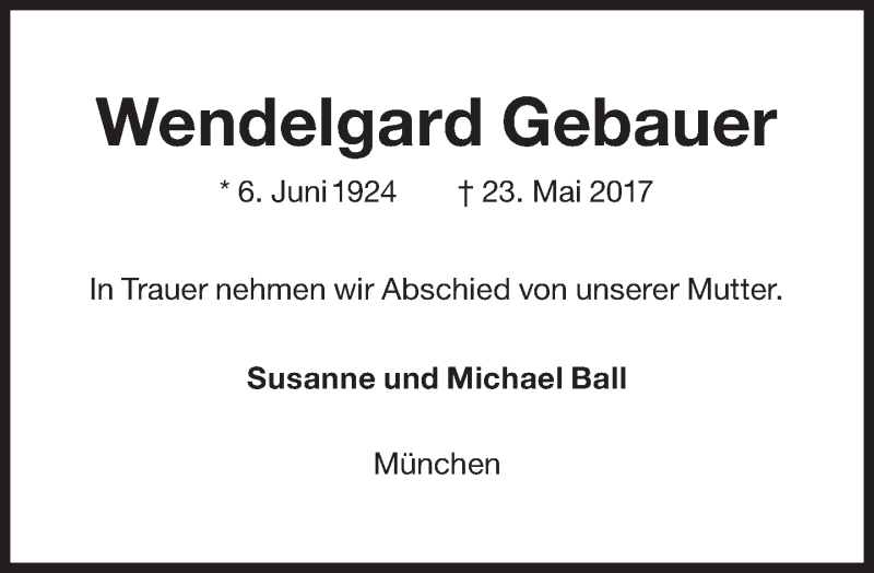 Hier finden Sie alle Traueranzeigen aus der Zeitung, die bisher für Wendelgard Gebauer erschienen sind. Weitere Traueranzeigen, die in der Zeitung erscheinen, werden hier ebenfalls aufgelistet