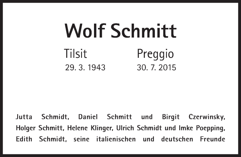 Hier finden Sie alle Traueranzeigen aus der Zeitung, die bisher für Wolf Schmitt erschienen sind. Weitere Traueranzeigen, die in der Zeitung erscheinen, werden hier ebenfalls aufgelistet
