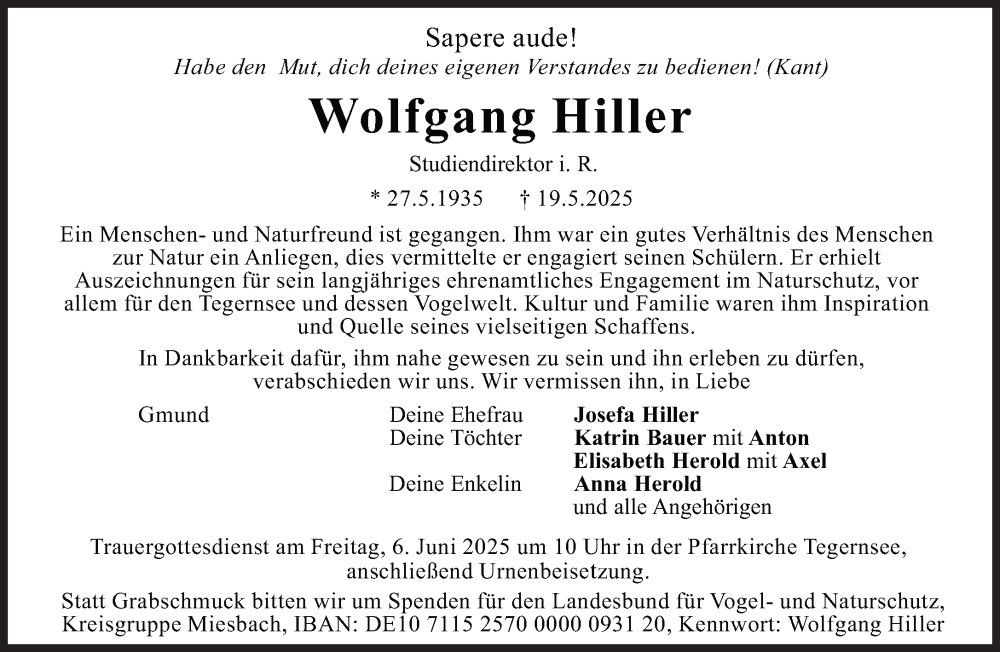 Hier finden Sie alle Traueranzeigen aus der Zeitung, die bisher für Wolfgang Hiller erschienen sind. Weitere Traueranzeigen, die in der Zeitung erscheinen, werden hier ebenfalls aufgelistet
