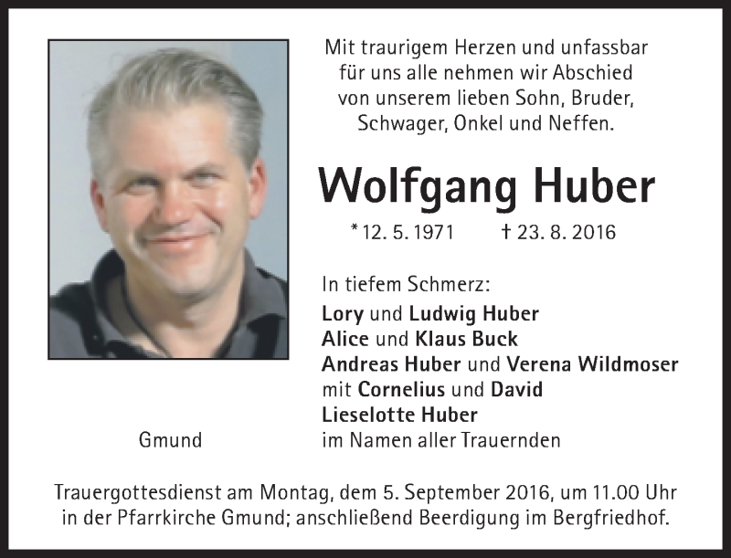 Hier finden Sie alle Traueranzeigen aus der Zeitung, die bisher für Wolfgang Huber erschienen sind. Weitere Traueranzeigen, die in der Zeitung erscheinen, werden hier ebenfalls aufgelistet