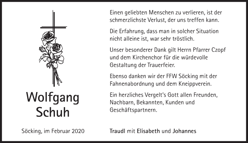 Hier finden Sie alle Traueranzeigen aus der Zeitung, die bisher für Wolfgang Schuh erschienen sind. Weitere Traueranzeigen, die in der Zeitung erscheinen, werden hier ebenfalls aufgelistet
