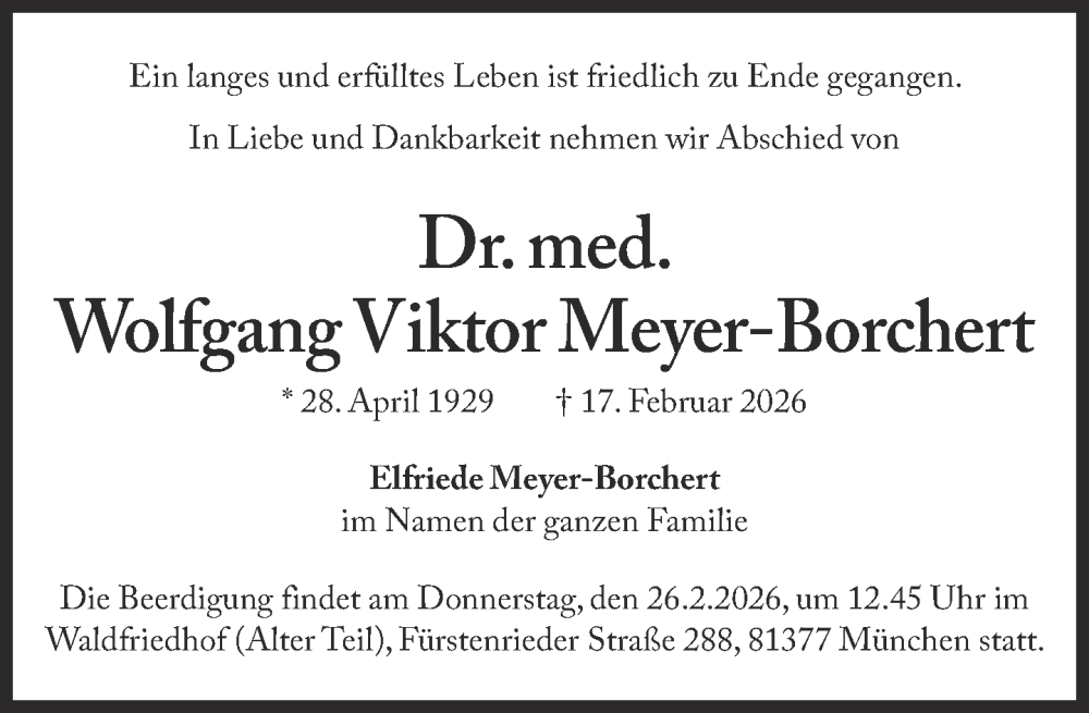 Hier finden Sie alle Traueranzeigen aus der Zeitung, die bisher für Wolfgang Viktor Meyer-Borchert erschienen sind. Weitere Traueranzeigen, die in der Zeitung erscheinen, werden hier ebenfalls aufgelistet