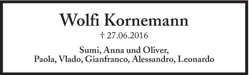 Hier finden Sie alle Traueranzeigen aus der Zeitung, die bisher für Wolfi Kornemann erschienen sind. Weitere Traueranzeigen, die in der Zeitung erscheinen, werden hier ebenfalls aufgelistet